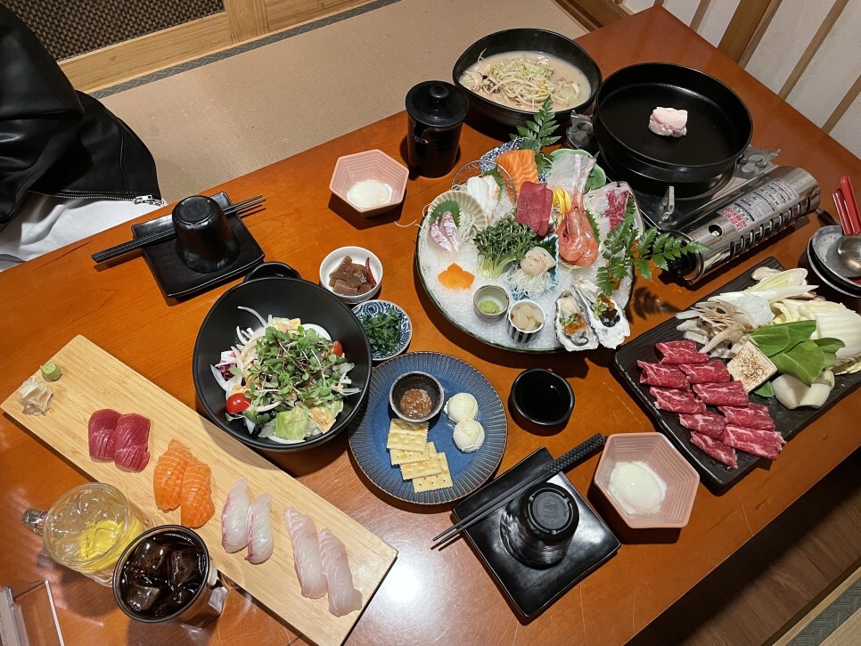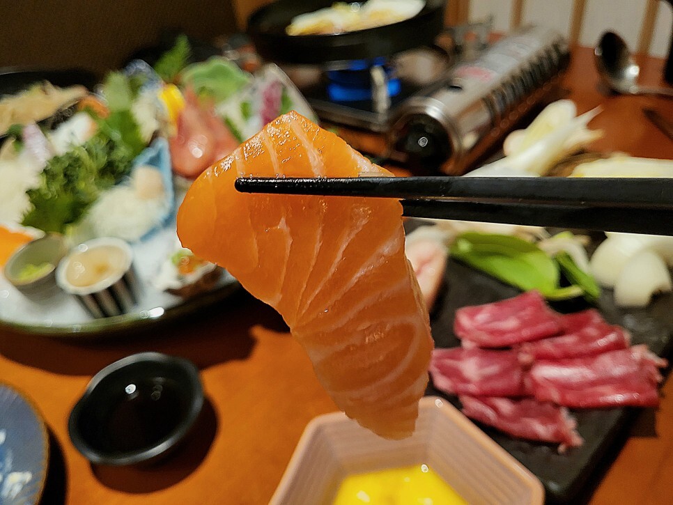 한우 스키야키 소고기와 다양한 모둠 회 하나하나 맛을 음미하면서 먹어봤는데