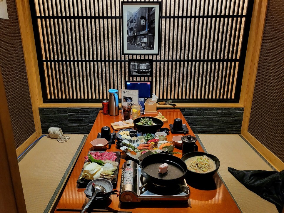 모둠 사시미, 한우 스키야키뿐 아니라 바로 국물요리도 같이 나왔는데